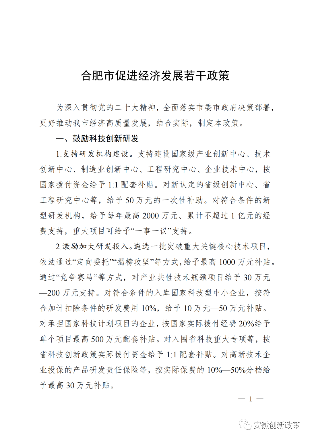 2022年合肥市促進經(jīng)濟發(fā)展若干政策,有效期2年