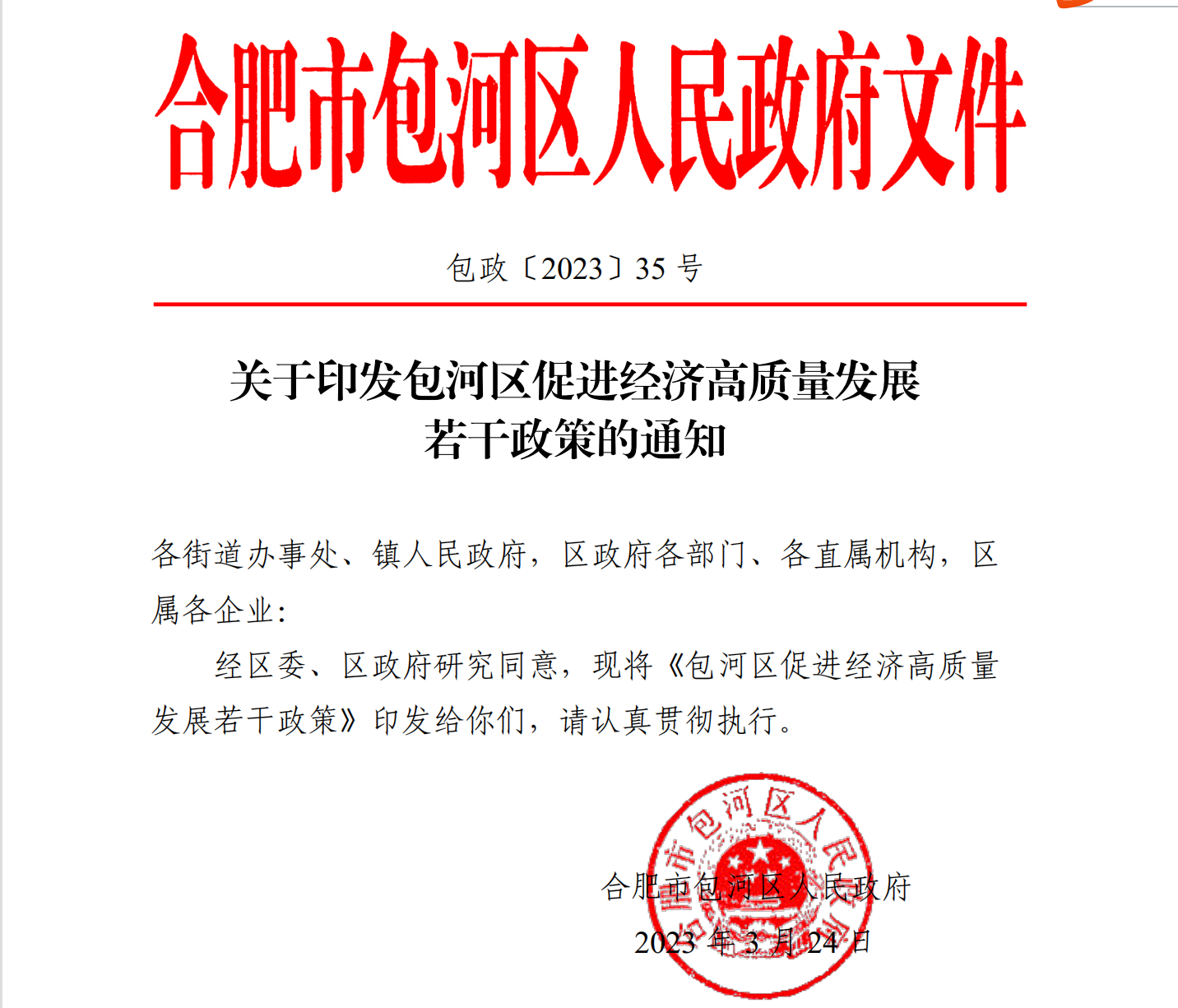 2023關于印發(fā)包河區(qū)促進經濟高質量發(fā)展若干政策的通知